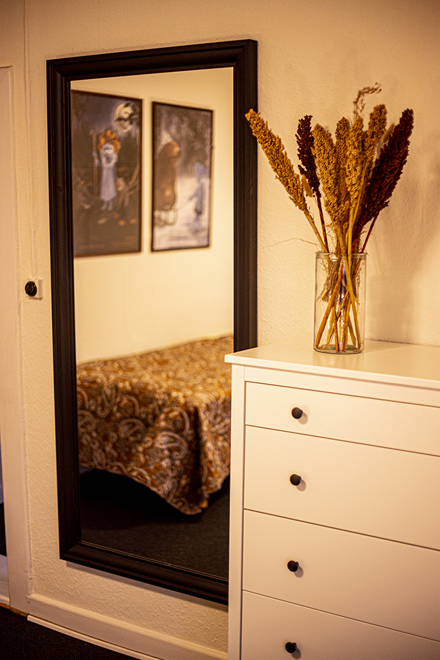 Kunsten på væggene er hovedsageligt Annes egne værker.